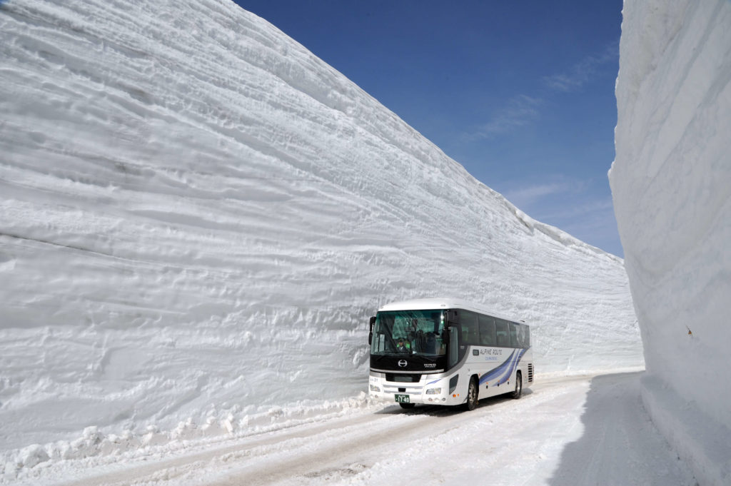 Nálunk 10 cm hó is gondot okoz és 2-3 napos reakcióidővel jelennek csak a hókotrók, eközben a japán alpokban, a 3000 méter magasan fekvő Tateyama Kurobe hegyi úton, 20 méteres (!) hóban is tudnak száraz utat produkálni.